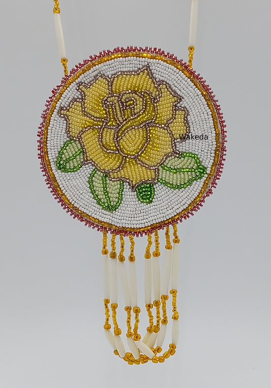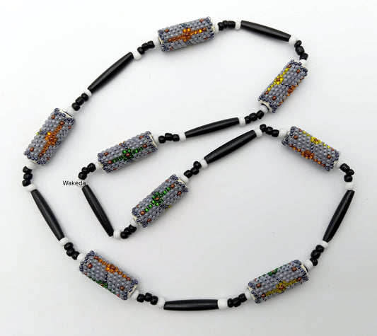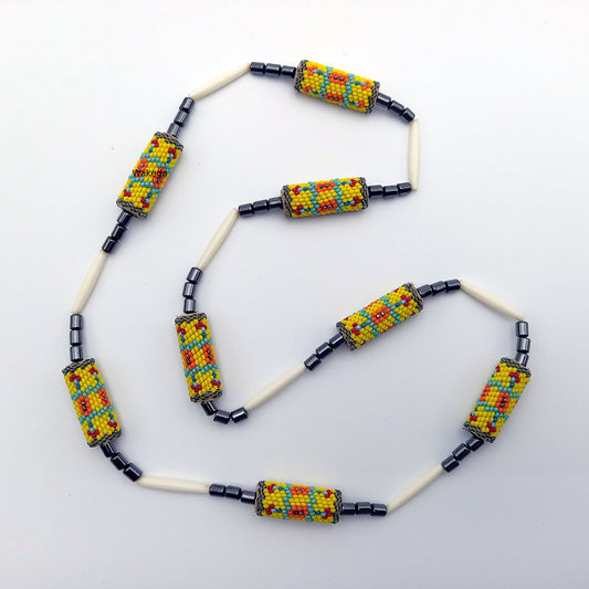 Peyote Beaded Section Necklace - Yellow with Hematite