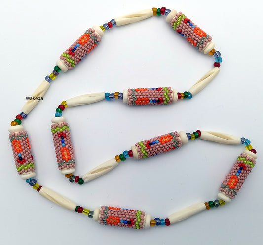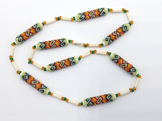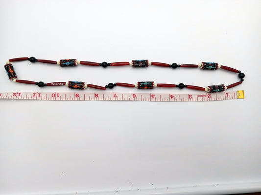 Peyote Beaded Section Necklace - Red Blue Yellow