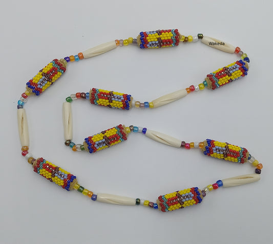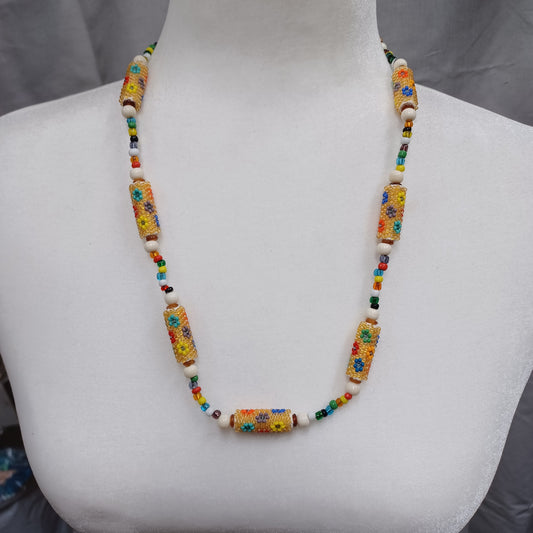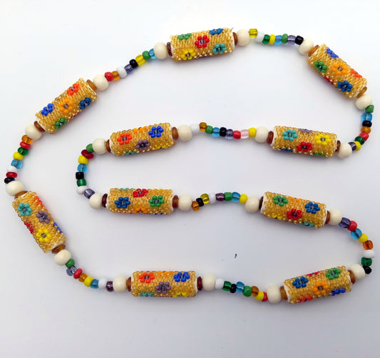 Peyote Beaded Section Necklace - Yellow Red Blue Purple