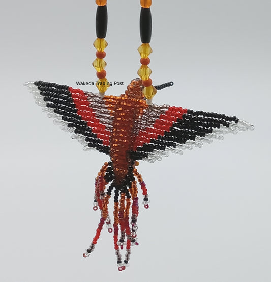 Beaded Hummingbird Necklace - Red, Black, Orange