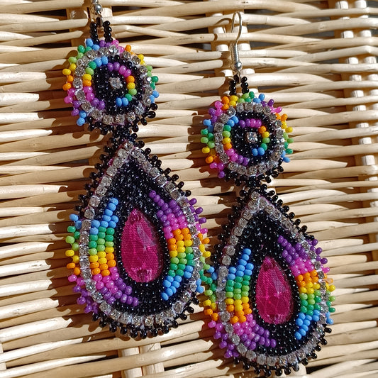 Beaded Bling Earrings - Jeweled Rainbow