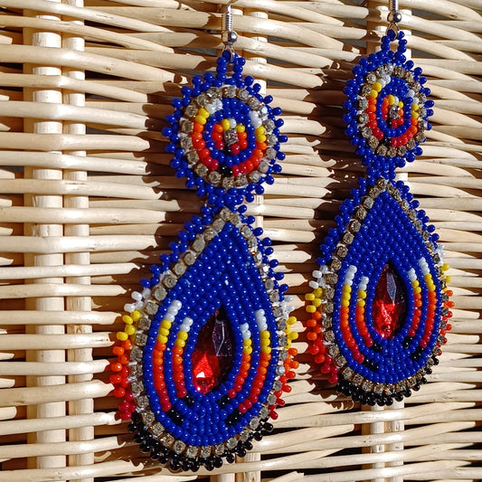 Beaded Bling Earrings - Blue Fire