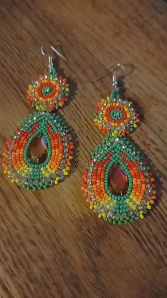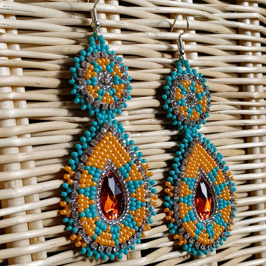 Beaded Bling Earrings - Turquoise Orange