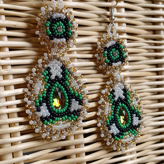 Beaded Bling Earrings - Green Fire