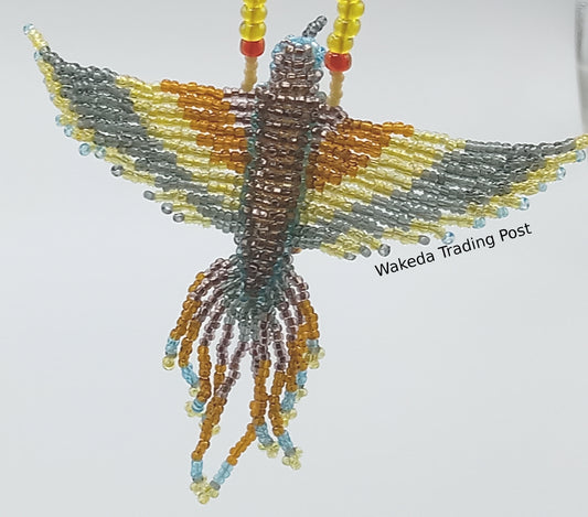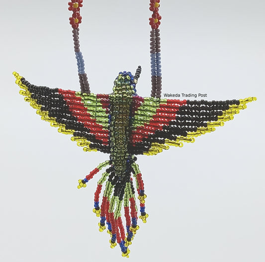 Beaded Hummingbird Necklace - Red, Green, Yellow