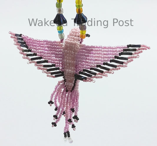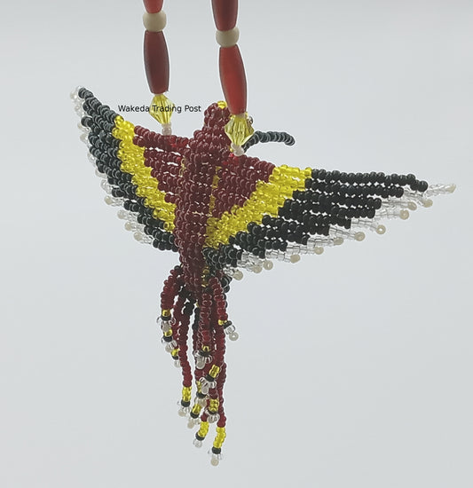 Beaded Hummingbird Necklace - Red, Black, Orange